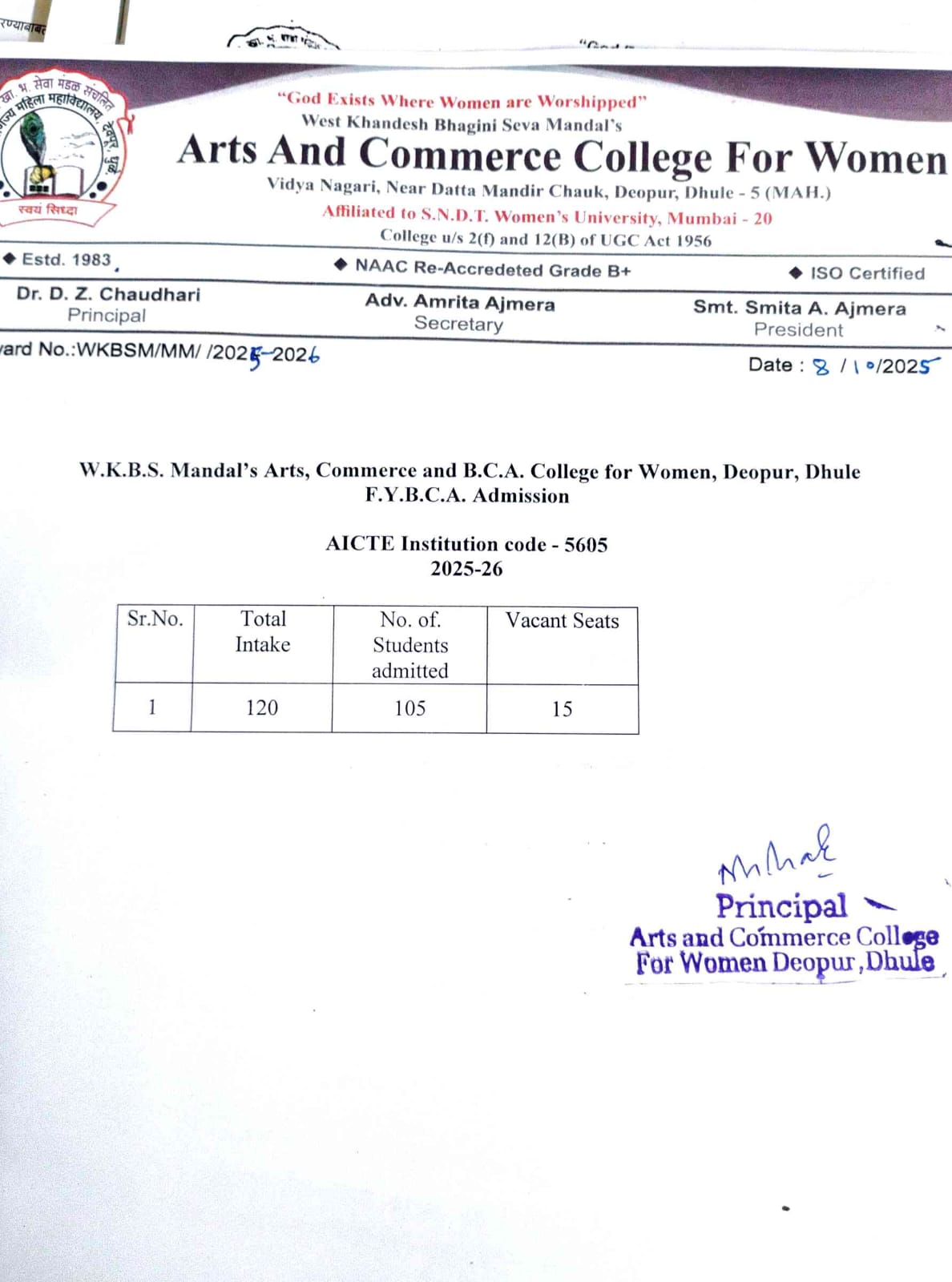 West Khandesh Bhagini Seva Mandal was established on 21st December 1956. It has been striving held in rendering the educational services to the community since last 52 years by keeping in view the integral objectives of providing useful and need-solving education to women and children and bringing their social, economic and cultural upliftment.